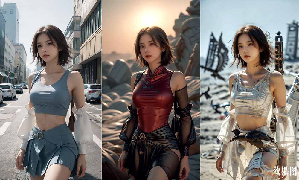 3.支持只换服装或者更换场景(内置100多套),当然不用lora模型只用提示器也可以